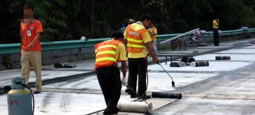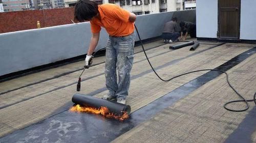卷材的厚度符合设计要求。将沥青防水卷裁剪成相应尺寸铺贴时随放卷随用火焰喷枪加热基层和卷材的交接处,经往返均匀加热,趁卷材的材面刚刚熔化时将卷材向前滚铺、粘贴。卷材平行屋脊从檐口处往上铺贴双向流水坡度卷材搭接应顺流水方向。卷材从流水坡度的下坡开始,按卷材规格弹出基准线铺贴,并使卷材的长边与流水坡向垂直。铺贴平面与立面相连接的卷材应由下向上进行。